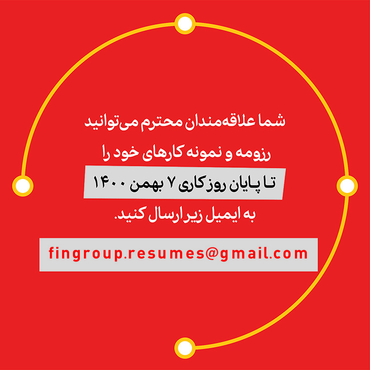 علاقمندان میتوانند رزومه و نمونه کارهای خود را تا پایان روز کاری 7 بهمن ماه 1400 به ایمیل زیر ارسال کنند.