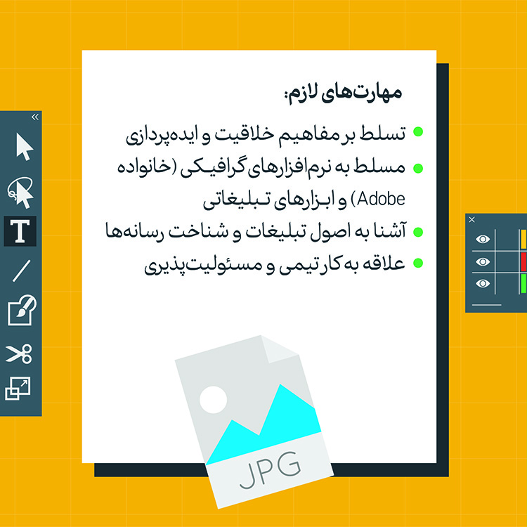 • مسلط به نرم‌افزارهای گرافیکی(خانواده Adobe) و ابزارهای تبلیغاتی
