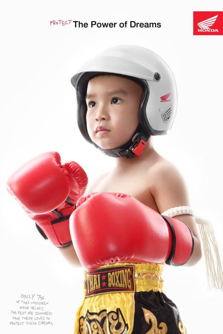 در تایلند، تنها ۱۶ درصد از کودکان هنگام سوار شدن بر موتورسیکلت از کلاه ایمنی استفاده میکنند؛ آماری نگرانکننده که سالانه جان حدود ۳۰۰۰ کودک را میگیرد، یعنی نزدیک به ۹ نفر در روز. هوندا با این کمپین با عنوان «محافظت از قدرت رؤیاها» تلاش کرد توجه والدین را به اهمیت این موضوع جلب کند.