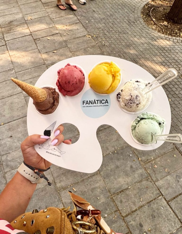 در مادرید، بستنیفروشی Fanática با رویکردی متفاوت و خلاقانه موفق شده است توجه کاربران شبکههای اجتماعی را جلب کند. این برند اسپانیایی، بستنیهای خود را بهجای ظرف یا قیف معمولی، روی پالت نقاشی سرو میکند؛ ایدهای که به مشتری امکان میدهد پنج طعم مختلف بستنی را در یک سفارش امتحان کند.